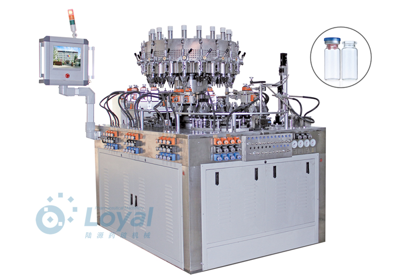 西林瓶生產(chǎn)線包括:自動(dòng)上管、自動(dòng)成型、經(jīng)機(jī)械手轉(zhuǎn)換至前端檢測(cè)線(也叫生產(chǎn)管控)、檢測(cè)線檢測(cè)的項(xiàng)目:1、瓶口內(nèi)外徑 2、瓶身長(zhǎng)短 3、瓶身外徑 4、瓶口邊厚 5、瓶底內(nèi)凹尺寸檢測(cè);經(jīng)檢測(cè)后的合格品再用機(jī)械手夾盤(pán)轉(zhuǎn)換至退火爐網(wǎng)帶上,經(jīng)高溫減除應(yīng)力后再降溫,通過(guò)氣動(dòng)吸盤(pán)將回火后的小瓶轉(zhuǎn)換至后端檢測(cè)線,后端檢測(cè)(也是重檢也叫終檢),經(jīng)后端拍照檢測(cè)項(xiàng)目